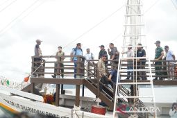 Kepala Otorita Ibu Kota Nusantara (OIKN) Basuki Hadimuljono (kiri) mendapat penjelasan dari petugas Badan Meteorologi, Klimatologi, dan Geofisika (BMKG) saat pelaksanaan rukyatul hilal di Rusun ASN 1 di Kawasan Inti Pusat …
